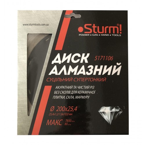 • Диск алмазный сплошной супертонкий (200x25.4 мм) Sturm 5171106