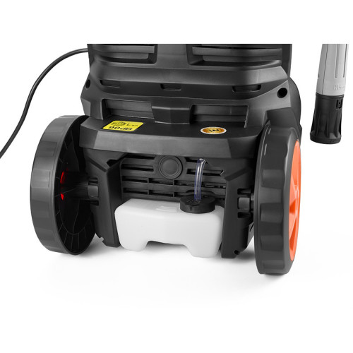 Мойка высокого давления Енергомаш МВ-9233 - мощное, относительно компактное, удобное в эксплуатации устройство бытового уровня. Предназначено для очистки транспортных средств, ухода за приусадебными территориями, мойки поверхностей из различных материалов. Оснащена бачком пенообразователя емкостью 1л. Синхронный электродвигатель мощностью 2100 Вт, установленный на мойке Енергомаш, обеспечивает производительность до 420 л/час. Агрегат оборудован алюминиевой помпой высокого качества, позволяющей осуществлять функцию самовсасывания. Подача воды осуществляется с рабочим давлением 140бар. Степень защиты мойки Енергомаш МВ-9233 относится к IPX5. Для удобства в работе агрегат оснащен транспортировочными колесами, шлангом высокого давления длиной 5 м. Аппарат оснащен фильтром тонкой очистки, предотвращающим попадание загрязненной воды в насос.