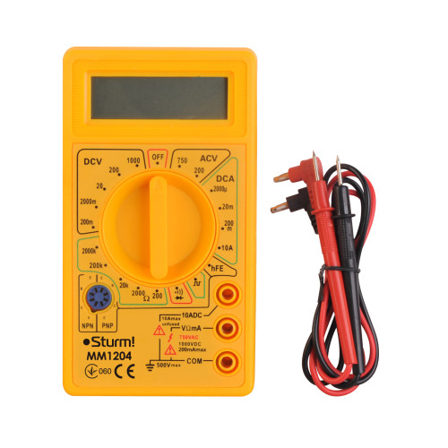 Мультиметр Sturm MM1204 относится к многофункциональным электронным измерительным приборам. Предназначен не только для измерений, но и для выявления неисправностей как в быту, так и на производстве. Данным прибором можно производить следующие работы: замер постоянного, переменного тока, напряжения, сопротивления, прозвонка цепей, тест диодов и т.д. Питание – батарейка “Крона” 9В.