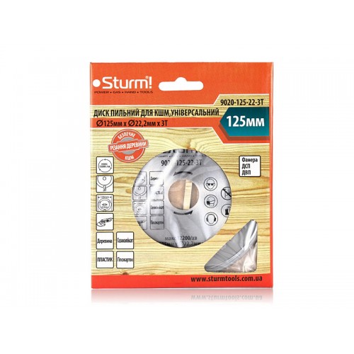 Универсальный диск по дереву для УШМ (дерево, пластик, гипсокортон, газоликат и т.д.) Sturm 9020-125-22-3T