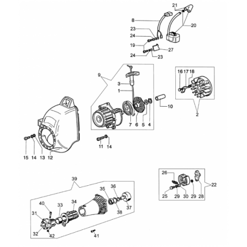 Корпус сцепления в комплекте с мотокосой OLEO-MAC SPARTA 25, SPARTA 25TR, EFCO STARK 25, STARK 25TR оригинальная запасная часть произведенная компанией EMAK.