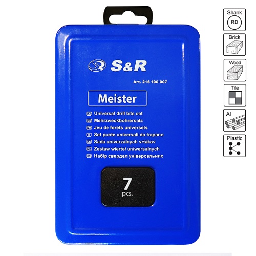 Набор сверл S&R 7 шт. универсальный – набор, который состоит и 5 универсальных сверл, которые предназначены для сверления отверстий в бетоне, камне, древесине и дерево содержащих материалах, металле, стали и пр. Идеально подходят как для профессионального использования, так и для домашнего мастера.