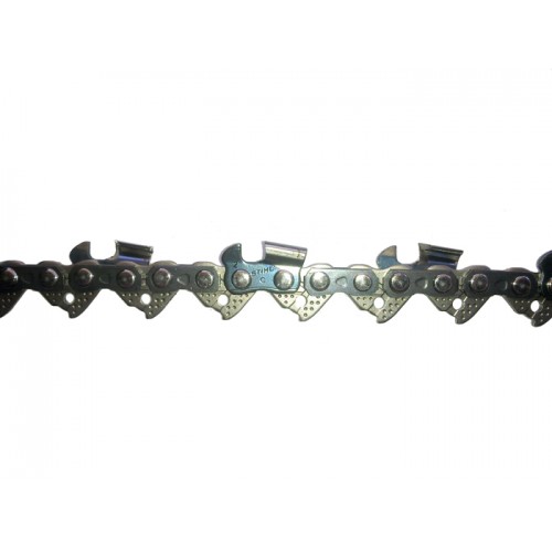 Профессиональная цепь из высоколегированной стали швейцарского производства с закалеными режущими зубъями полукруглый формы зуба размером 64 звена, шагом 0.325 толщиной звена 1.3 мм. Так же можно купить 1.5 мм толщину звена модель 25RS супер зуб, 25RM полукруглой формы зуб. Совместимость данной модели этой цепи с размером шин 380 в дюймах это "16 дюймов. Данная цепь предназначенна для различных пород деревьев с низкой вибрацией и низким уровнем шума. Цепь Stihl имеет 32 режущих полукруглых зуба с последовательным соединении через один. Заточка производится под углом 30º на заточном станке. Применение напильника 4,8 мм, можно только поправить заточку а не заточить.
