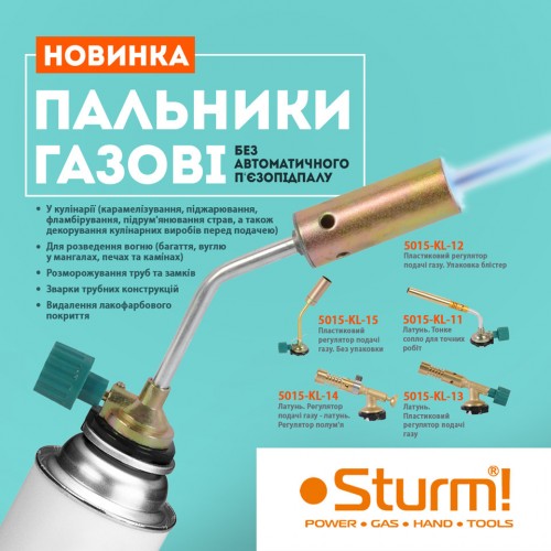 Горелка газовая, тонкое сопло, латунь Sturm 5015-KL-11
