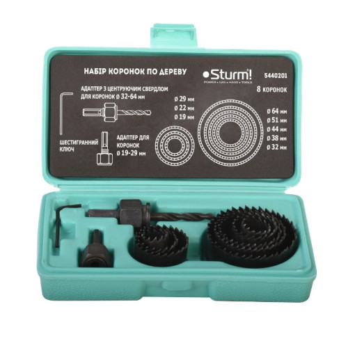 Набор коронок по дереву (11 предметов; 8 коронок 19-64 мм) Sturm 5440201
