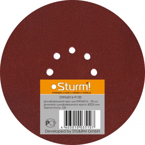 Шлифбумага круглая 225мм, зерно 120, 20шт Sturm DWS6016-9120