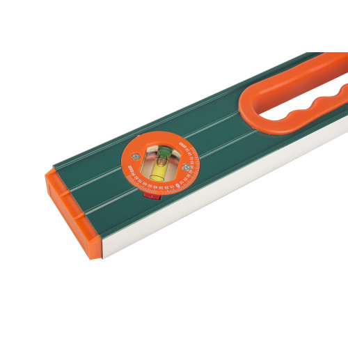 Sturm 2015-02-800 – алюминиевый уровень с фрезерованной поверхностью. Оснащен двумя основными глазками для выравнивания поверхности и одним поворотным. Для удобства имеются 2 ручки.