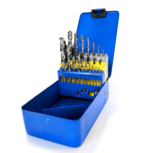 Все сверла собраны в удобном металлическом кейсе, в котором Вы с легкостью сможете найти нужный размер по выбранному материалу.